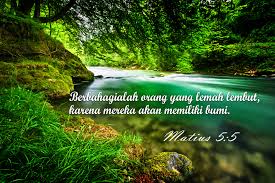 Berbahagialah orang yang lemah lembut, karena mereka akan memiliki bumi. // μακάριοι οἱ πραεῖς, ὅτι αὐτοὶ κληρονομήσουσιν τὴν γῆν {Matius 5:5}